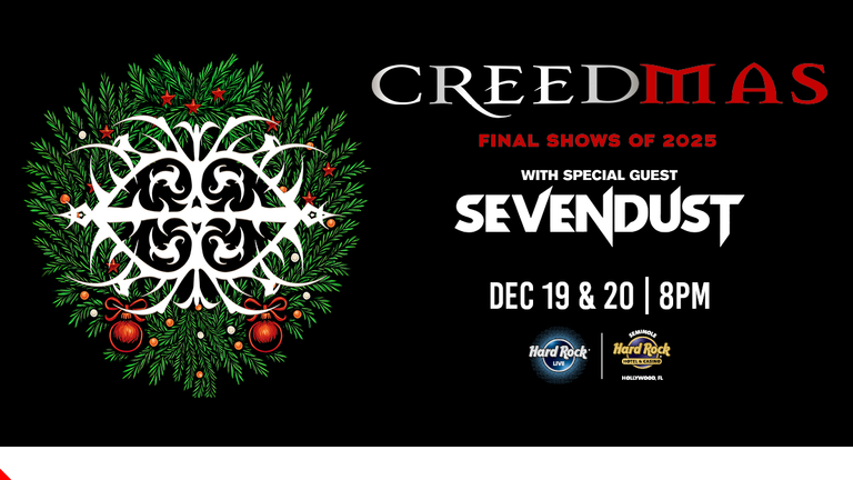 Get ready to rock this holiday season because Creed is bringing “Creedmas” to Hard Rock Live at the Seminole Hard Rock Hotel & Casino for not one, but two unforgettable nights on Thursday, December 19th, and Friday, December 20th! With special guests, Sevendust, you don't want to miss this!