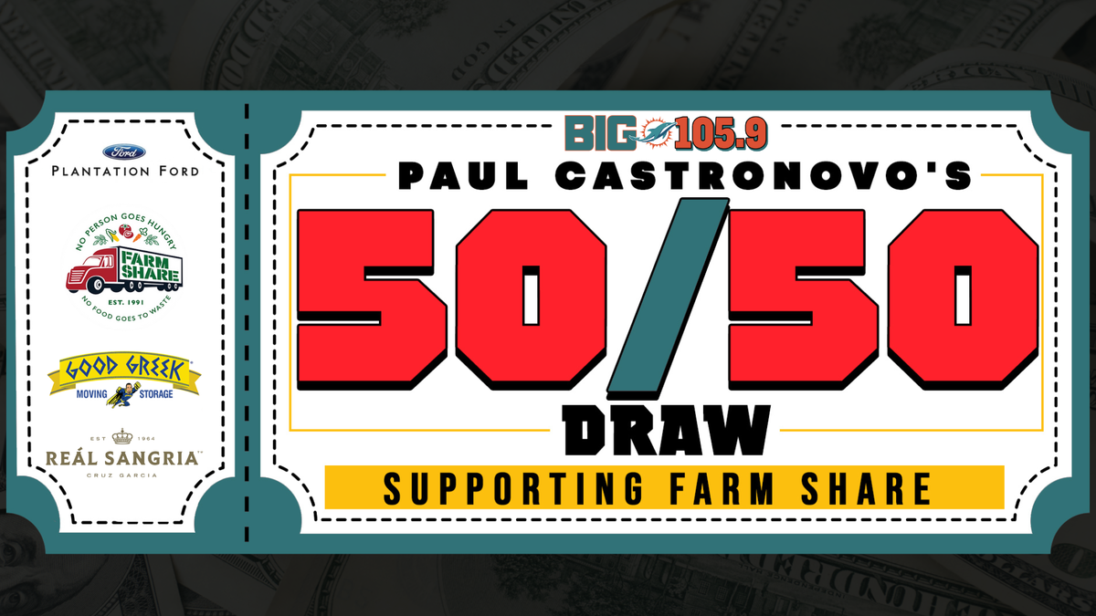 Let's go back to last fall when one of the greatest prizes in radio history was awarded, the cool part, Farm Share also received $94,165 to help feed those in need in South Florida. The great news, the Paul Castronovo's 50/50 Draw in support of Farm Share is back! Get your tickets now to help those in need in our community and put some cash in your pocket at the same time. Every ticket helps to raise monies that will be reinvested in infrastructure and operations to help Farm Share feed more hungry families, children, seniors and individuals throughout Florida.