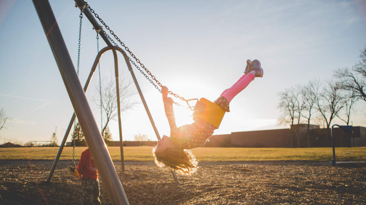 He had his kid in a swing set and was enjoying a beer. How he pushed the swing? Using garden tools.
